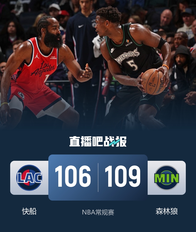 森林狼18分逆转快船 哈登34分+历史前十里程悲 里德末节14分