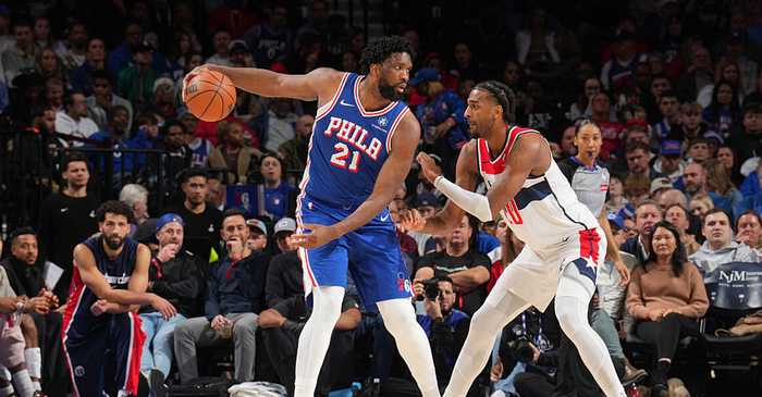 76人队恩比德28分7板2帽,乔治23分5助2断1帽,马克西22分8助2断,格里姆斯16分,埃奇库姆13分7助5断,德拉蒙德11分4板,巴洛11分;